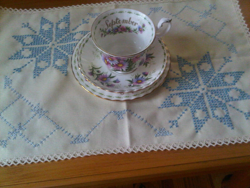 Cross-stitch is a classic and beautiful craft. It is also therapeutic as I discovered recently. I had an operation and was laid up for over 4 months. Life is frustrating when I am idle and, being confined to bed, I wanted to do something creative. With cross-stitch all that’s needed is a cloth to work, some pretty cottons, a needle and a little pair of scissors to snip the thread.
