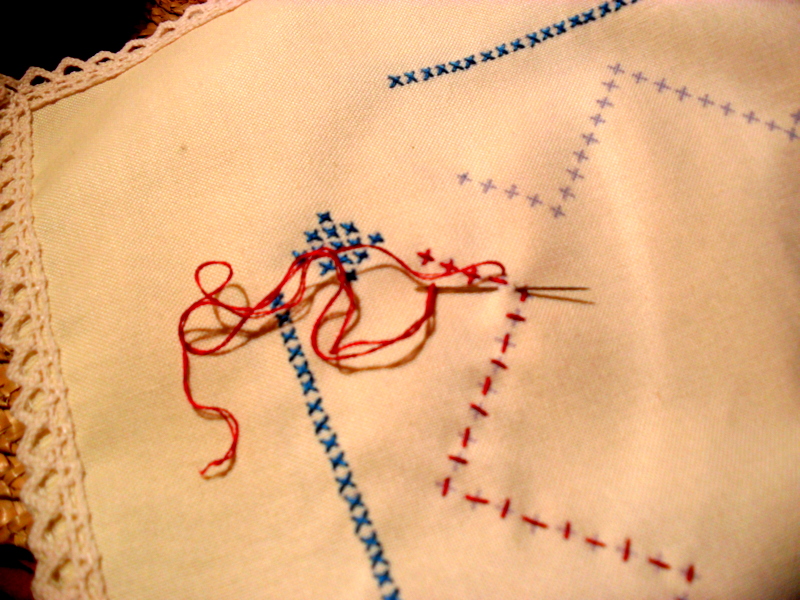 I found a gorgeous web site called “Sarah’s Hand Embroidery Tutorials” which demonstrates embroidery stitches beautifully – here is the link to the cross stitch section http://www.embroidery.rocksea.org/stitch/cross-stitch/cross-stitch/.