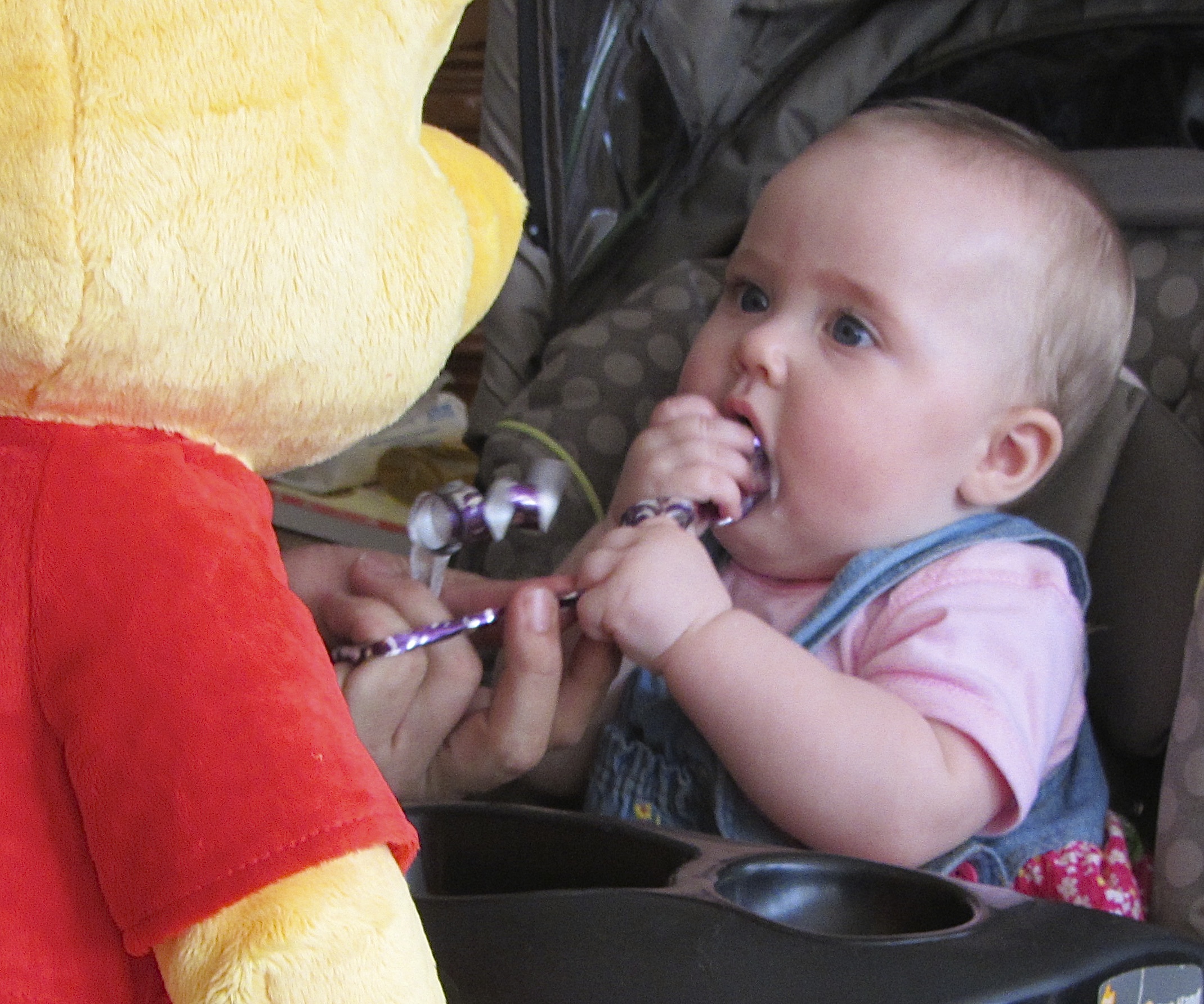 When a child meets a new toy it’s as though the child finds a soul inside of the toy.  The expression on Baby Ava’s face says it all.