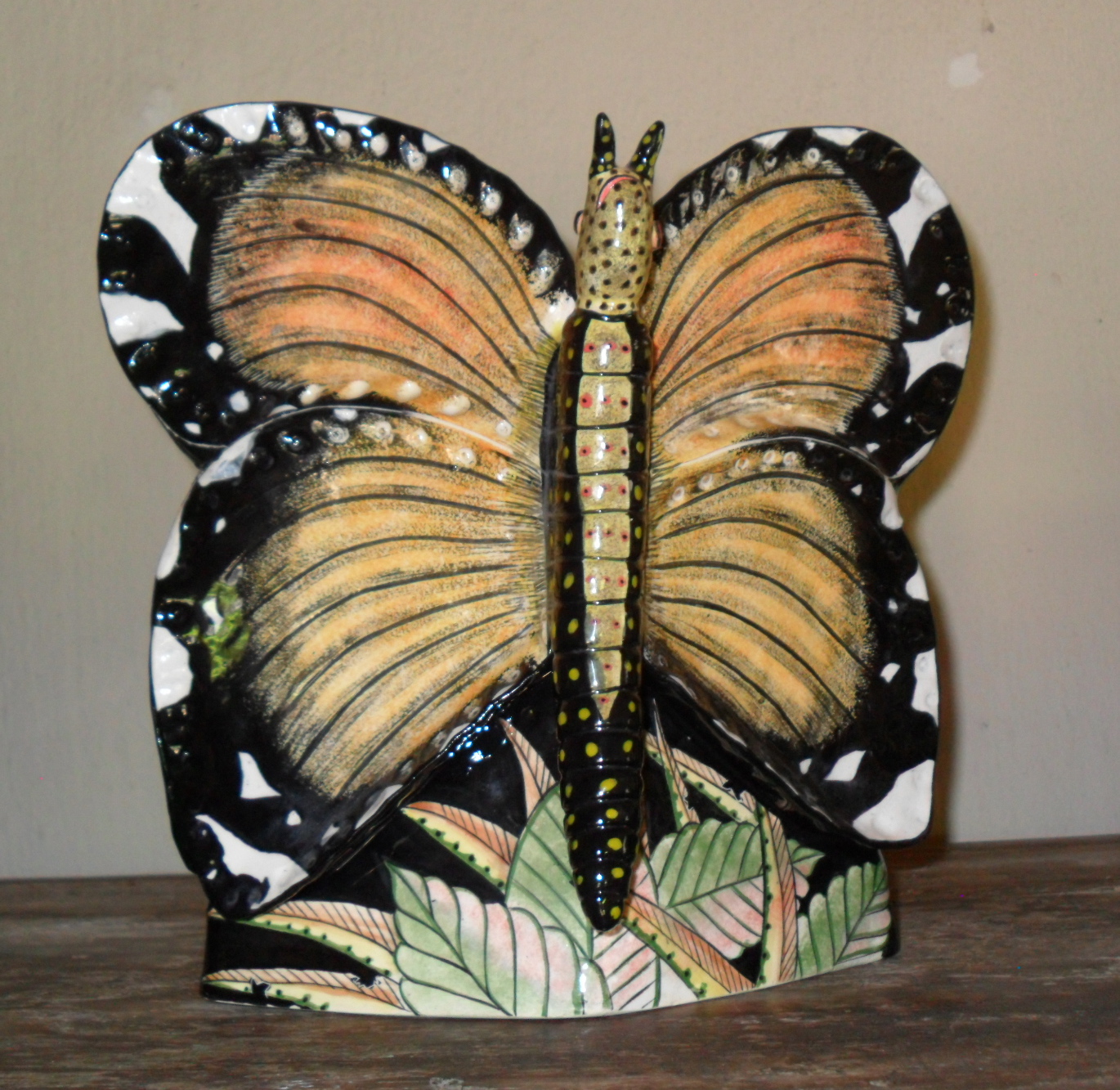 The work has drama and tells a story, making the pieces like a ceramic book.  The colours are strong and lovely. Nature dominates at Ardmore, there are monkeys and lions and butterflies and flowers ……… the list and combinations are endless.